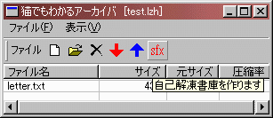 今回はLHAの自己解凍書庫を作ります。作り方は簡単です。