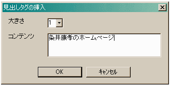 エディットコントロールに書き込み、OKボタンを押すとhタグが挿入されます。