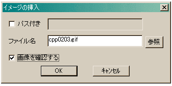 メニューの「挿入」「<IMG>」を選択すると、左の図のようなダイアログが
