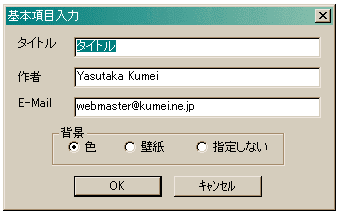 「基本項目入力」ダイアログボックスで、背景の色や、壁紙を指定できるようにしました。