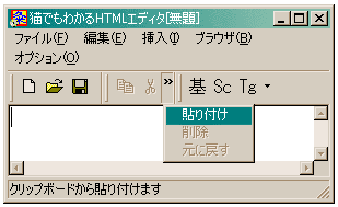 今回は、これを修正します。また、メニュー項目によっては説明がステータスバーに表示されないものが ありましたが、今回はすべて表示するようにしました。
