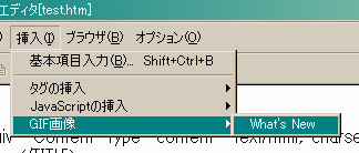 メニューの「挿入」「GIF画像」「What's New」を選択します。