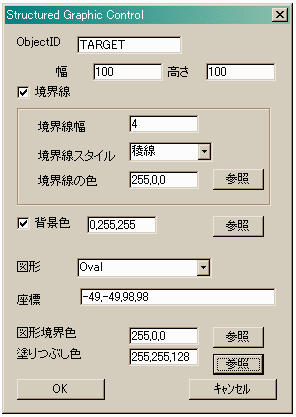 <OBJECT ID="target" CLASSID="CLSID:369303c2-d7ac-11d0-89d5-00a0c90833e6" STYLE="position:absolute;width:400;height:300;border:4 double rgb(255,0,0);"> <PARAM NAME="LINE0001" VALUE="SetFillColor(255,255,0)"> <PARAM NAME="LINE0002" VALUE="SetLineColor(0,0,255)"> <PARAM NAME="LINE0003" VALUE="Rect(-50,-50,100,100)"> </OBJECT> |