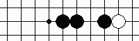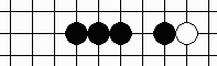 また、「43」が出来てもそれで勝ちとは言い切れません。この4を止めた石で、止めた方に4 が出来ると勝敗はわかりません。 (注:ここでは、前章のルールで行います)