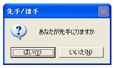 nID = MessageBox(hWnd, "あなたが先手にりますか", "先手/後手", MB_ICONQUESTION | MB_YESNO);