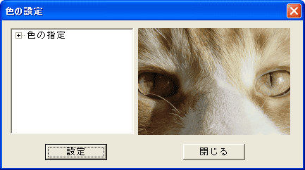 「色の設定」を選択するか、ツリービューを折りたたむと また、猫の画像が表示されます。