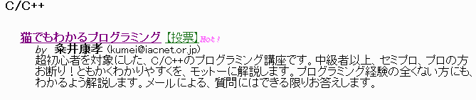 cbook24.comでも「猫でもわかるネットワークプログラミング」の予約が始まりました。(2003/10/30)