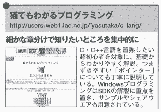 「猫でもわかるC言語プログラミング」の内容紹介(イメージ)ページ