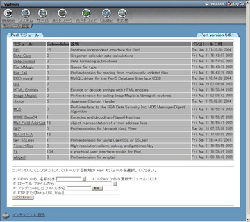 - 本コーナーの(UNIX/Linux)版のPerlモジュールのインストールは、すべてWebminから行う事を前提としています。