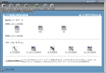 - Webminがインストールされていれば、新しいデータベースの作成からテーブルの作成、データの追加まで