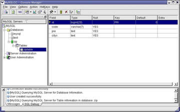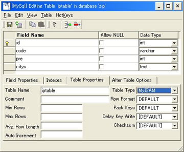 データベースツリーの「zip」をダブルクリックして、「Tables」を右クリックし、