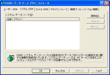 [システム DSN]タブの[追加]を押します。