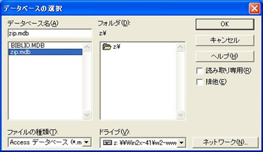 このサンプルでは全国の郵便番号が格納されている「zip.mdb」を選択しています。