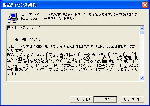 ライセンス表示よく読み、ご賛同いただけ方だけが[はい]を押します。