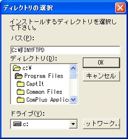 C:\TINYFTPDに変更して[OK]ボタンを押します。