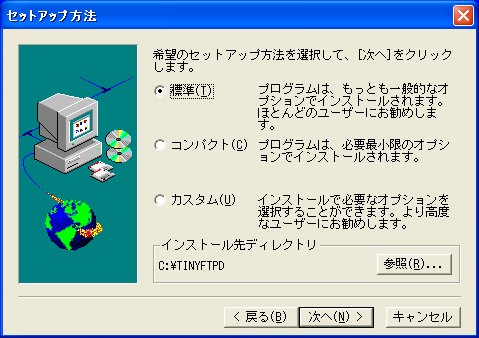 セットアップ方法は、デフォルトの[標準]を選択して[次へ(N)>]を押します。
