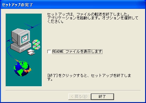 インストールが完了し[終了]ボタンでコンピュータを再起動すれば終了です。