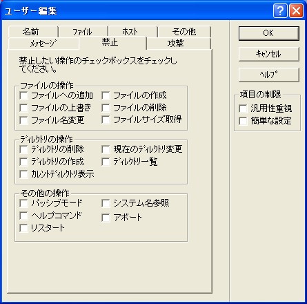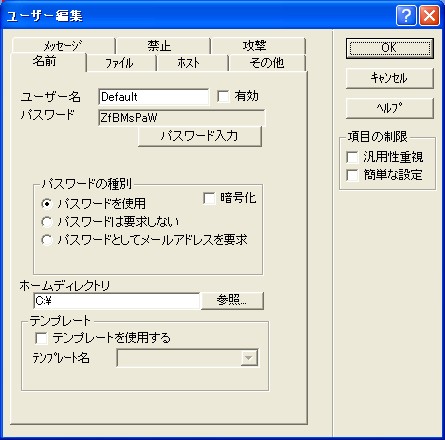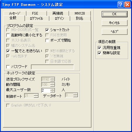 ここでは、最低限度必要な設定のみを紹介します。Tiny FTP Daemonには日本語の詳しいヘルプも装備されていますので、