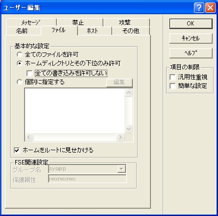 [ホームをルートに見せかける]をチェックしておけばクライアントのウィンドウには上層のフォルダーが無いかのように表示されます。