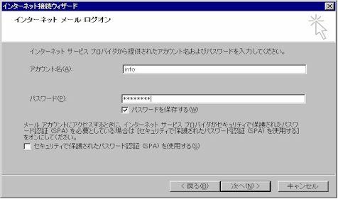 ここは、メールサーバに設定したユーザのアカウント名とパスワードです。
