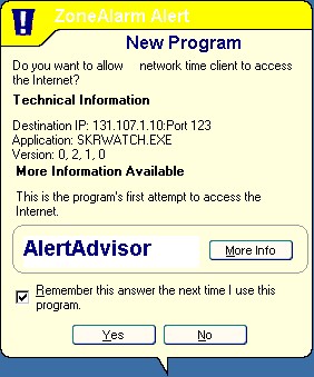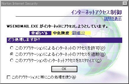 これで同じソフトで警告を出さなくなります。見覚えの無い物は[No]をクリックすれば遮断します。