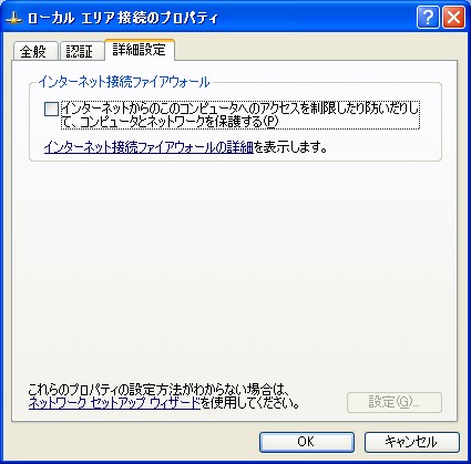 Windows Xpの場合は、標準のファイアウォールを無効にしてください。