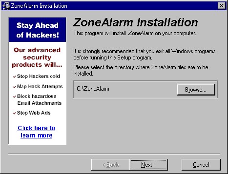 ZoneAlarmのダウンロードページからzaSetup_1001.exeをダウンロードします。