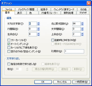 「基本」設定はほとんど変更する必要は有りません。