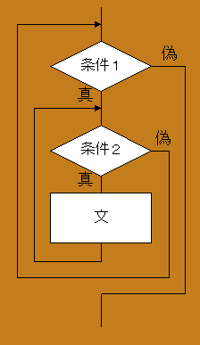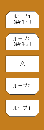 条件による処理の分岐を表す(if文など)。反復(loop)の開始、終了