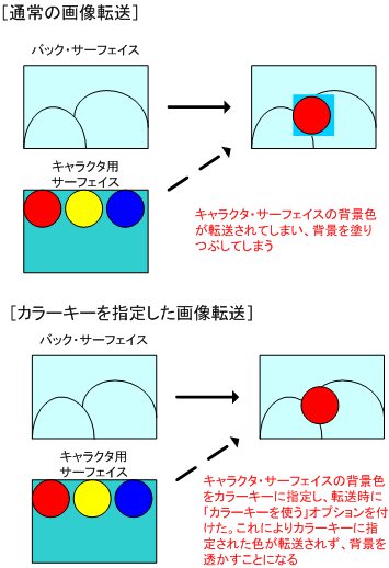 画像転送時、指定したカラーキーを使うかどうかはオプションによって指定する。
