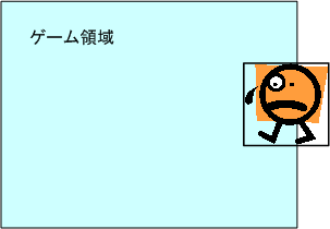 RECT GameRect = {0, 0, 640, 480}; // ゲーム領域(キャラクタ表示領域の矩形) RECT CharRect = {0, 0, 100, 100}; // キャラクタ画像の矩形 int x = 600, y = 300; // キャラクタ表示座標 RECT wRect; // 描画に使う矩形 int wx, wy; // 描画に使う座標 int width, height; // 計算用 ・ ・ ・ /* データの準備 */ wRect = CharRect; wx = x; wy = y; width = CharRect.right - CharRect.left; height = CharRect.bottom - CharRect.top; /* 指定範囲を超えた画像を切り取る */ if (x < GameRect.left) // 左側 { wRect.left = CharRect.left + (GameRect.left - x); wx = GameRect.left; } else if (GameRect.right < x + width) // 右側 { wRect.right = CharRect.right - ((x + width) - GameRect.right); } if (y < GameRect.top) // 上側 { wRect.top = CharRect.top + (GameRect.top - y); wy = GameRect.top; } else if (GameRect.bottom < y + height) // 下側 { wRect.bottom = CharRect.bottom - ((y + height) - GameRect.bottom); } /* 描画処理(切り取った矩形と座標を使う) */ hRet = g_pDDSBack->BltFast(wx,wy, g_pDDSChar,&wRect, DDBLTFAST_SRCCOLORKEY); if (hRet != DD_OK) return;※キャラクタ表示座標と画像の矩形は繰り返し使うため、描画処理用の変数を用意している