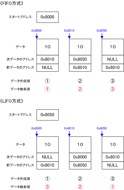 ※LIFO方式の場合、検索には次データへのアドレスは使わない