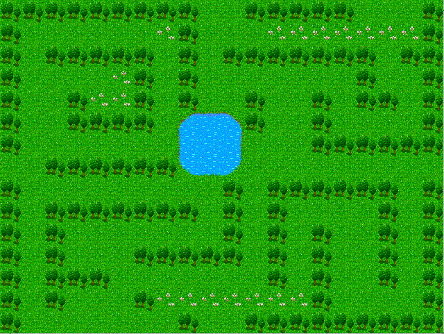 この背景は、32×32ピクセルで作成した背景用の画像(マップチップ)を横に20個、縦に15個並べ、640×480ピクセルの背景を作成している。
