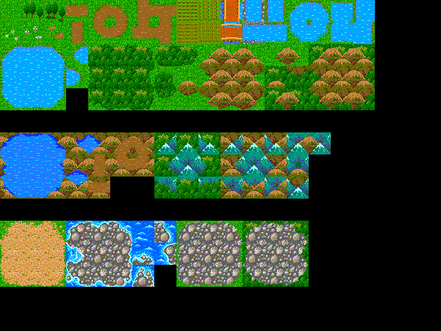 そして、マップチップを好きなように並べ替え、例えば次のようにバック・バッファに貼り付けることを考える。