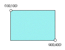 このプログラムの場合、頂点X,Y座標はそれぞれ(100,100)(400,100)(400,400)(100,400)である。