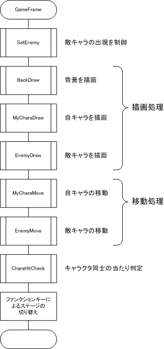 ゲーム中の処理は、次の順番で各処理を実行している。