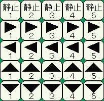 見てわかるとおり、自キャラの画像を「静止」「左向き」「右向き」「上向き」「下向き」それぞれ5枚ずつ用意した。