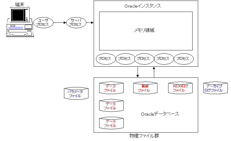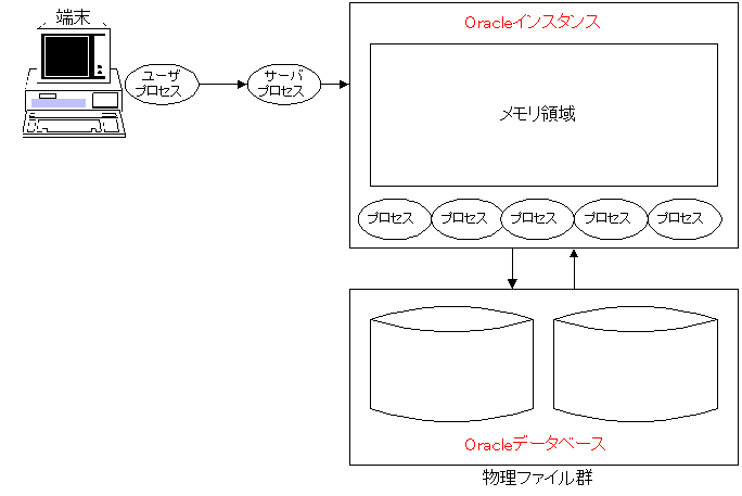- Oracle RDBMSの中心部分をOracleインスタンスと呼ぶ。