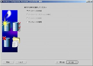 データベースを作成するので「データベースの作成」を選択し、「次へ」をクリック。 2-3 データベース・テンプレート