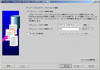 「フラッシュ・リカバリ領域の指定」にチェックが入っていることを確認し、「次へ」をクリック。 2-10 データベース・コンテンツ