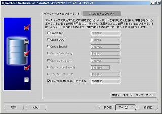 その後、データベース・コンテンツ・ウィンドウで「Enterprise Managerリポジトリ」以外のチェックをすべて外し、「次へ」ボタンをクリック。2-11 初期化パラメータ