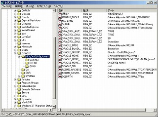 Cドライブのoracleフォルダを確認すると、「C:\oracle\product\10.1.0\oradata」および「C:\oracle\product\10.1.0\admin」内に、SID名で指定した「orcl」という名前のフォルダが作成されていることが分かる。 3-2 レジストリ