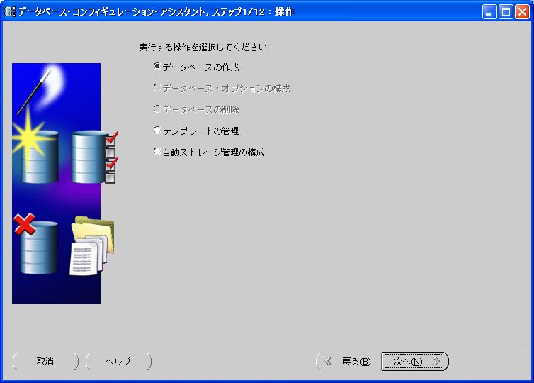 ここでは、DBCA起動後の画面からデータベースを作成する方法を解説する。