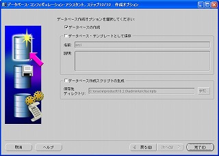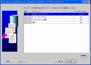 データベースを作成するので「データベースの作成」を選択し、「次へ」をクリック。 2-3 データベース・テンプレート