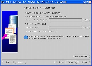 「ファイルシステム」にチェックが入っていることを確認し、「次へ」をクリック。 2-8 データベース・ファイルの位置