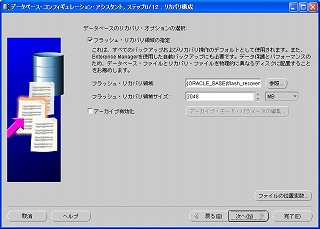 「フラッシュ・リカバリ領域の指定」にチェックが入っていることを確認し、フラッシュ・リカバリ領域サイズを適当な大きさに調整して「次へ」をクリック。