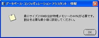 (多分だけど)メモリが少ないと、この警告画面が出る。「OK」ボタンをクリック。 2-14 初期化パラメータ