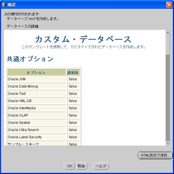 教科書では、OracleServerのインストール時に初期データベースを作成するように紹介されているが、DBCA単体で使用するほうが応用が利くため、授業ではそのように進める。