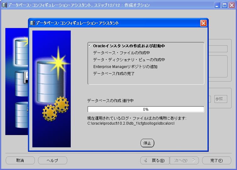 Oracle9iまでは、CREATE DATABASE文を発行してデータベースを作成するよう解説されていたが、Oracle10gから、DBCA(Database Configuration Assistant)を使って行うように解説されている(9iでも紹介はされていた)。