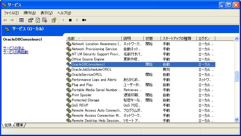 これで、データベースが自由に利用できるようになった。しかし、OracleServerは大量のリソースを消費するため、Oracleが自動起動するままでは、他の授業に支障が出る。よって、普段はOracle関係のサービスが起動しないように、設定を変えておく。